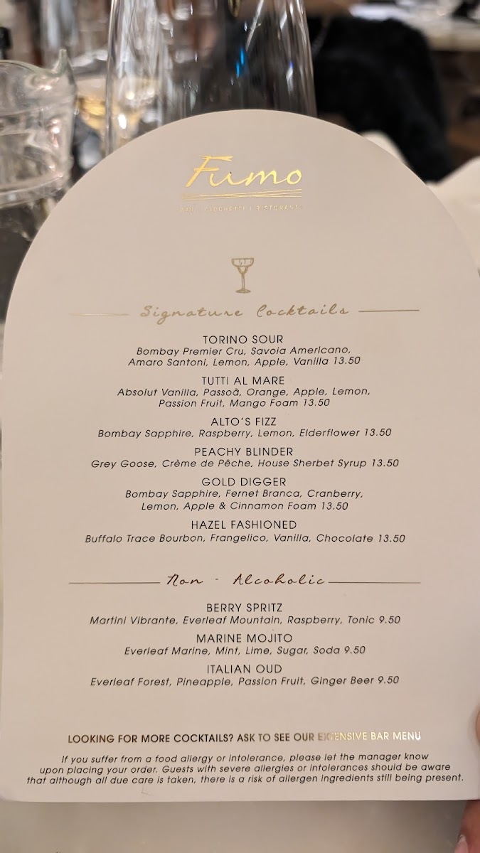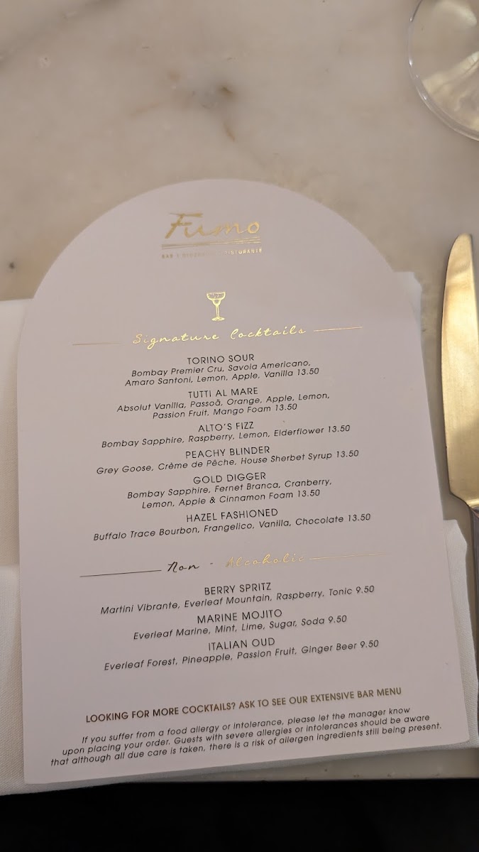 What sets Fumo apart from competitors is its emphasis on shared dining-encouraging guests to explore multiple dishes rather than sticking to a standard starter-main-dessert format. This adds a sociable dynamic to the experience, making it more interactive and memorable. The drinks list is equally impressive, with a curated selection of Italian wines, classic cocktails, and after-dinner liqueurs.